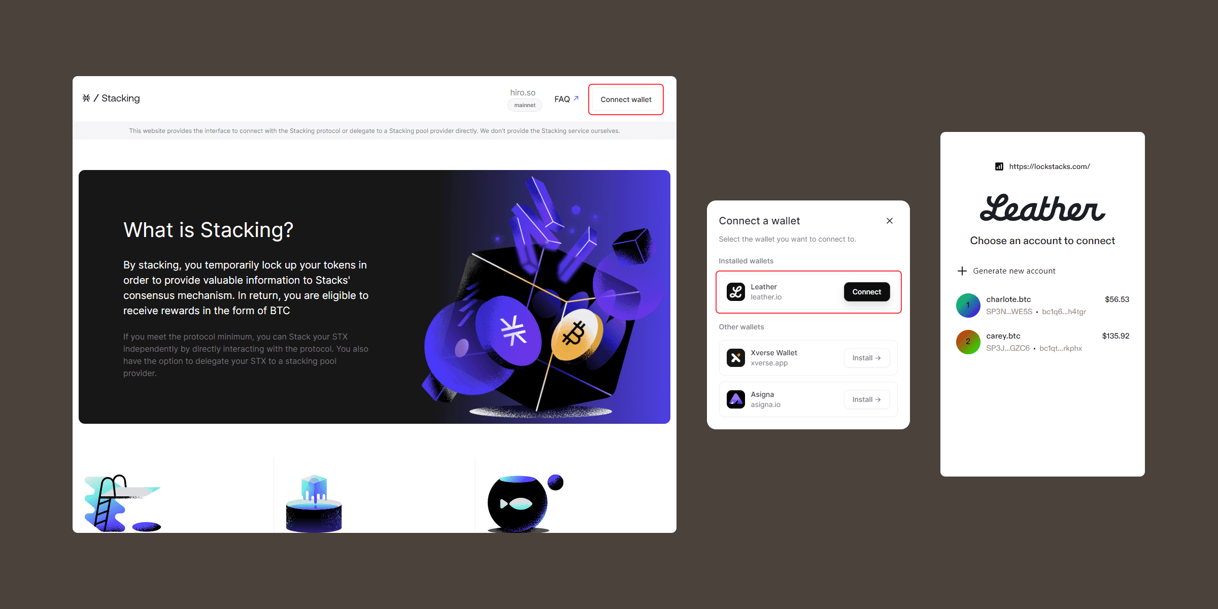 Currently, Leather users have three ways to participate in the Stacking process via Lockstacks. It is important to note that Leather does not manage or oversee Stacking; it simply allows users to integrate with Stacking products built by others.