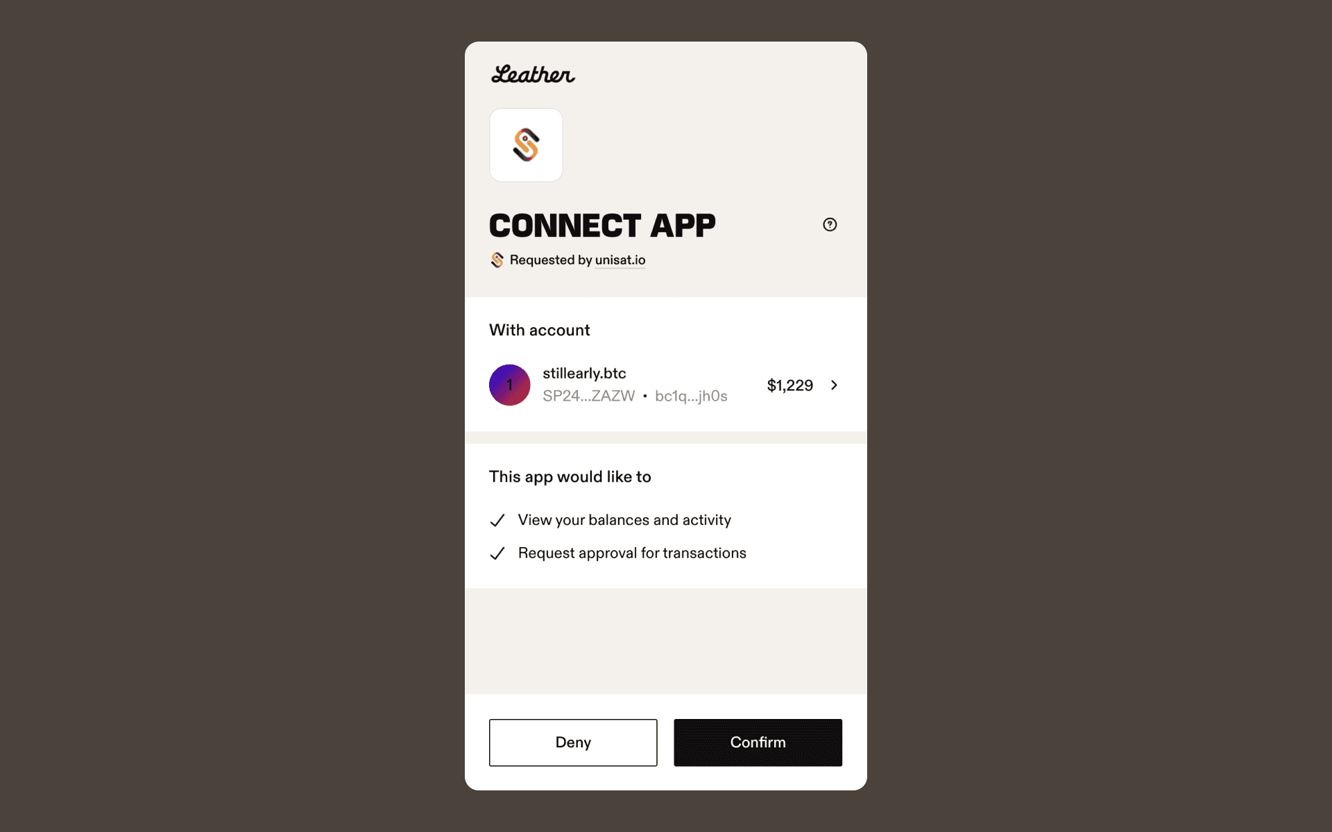 Leather gives users the chance to connect to dApps on Bitcoin. Once connected, a user can buy NFTs and Ordinals on marketplaces like Gamma.io, swap tokens on DEXs like Bitflow Finance, and conduct an even bigger variety of transactions on the Bitcoin blockchain.