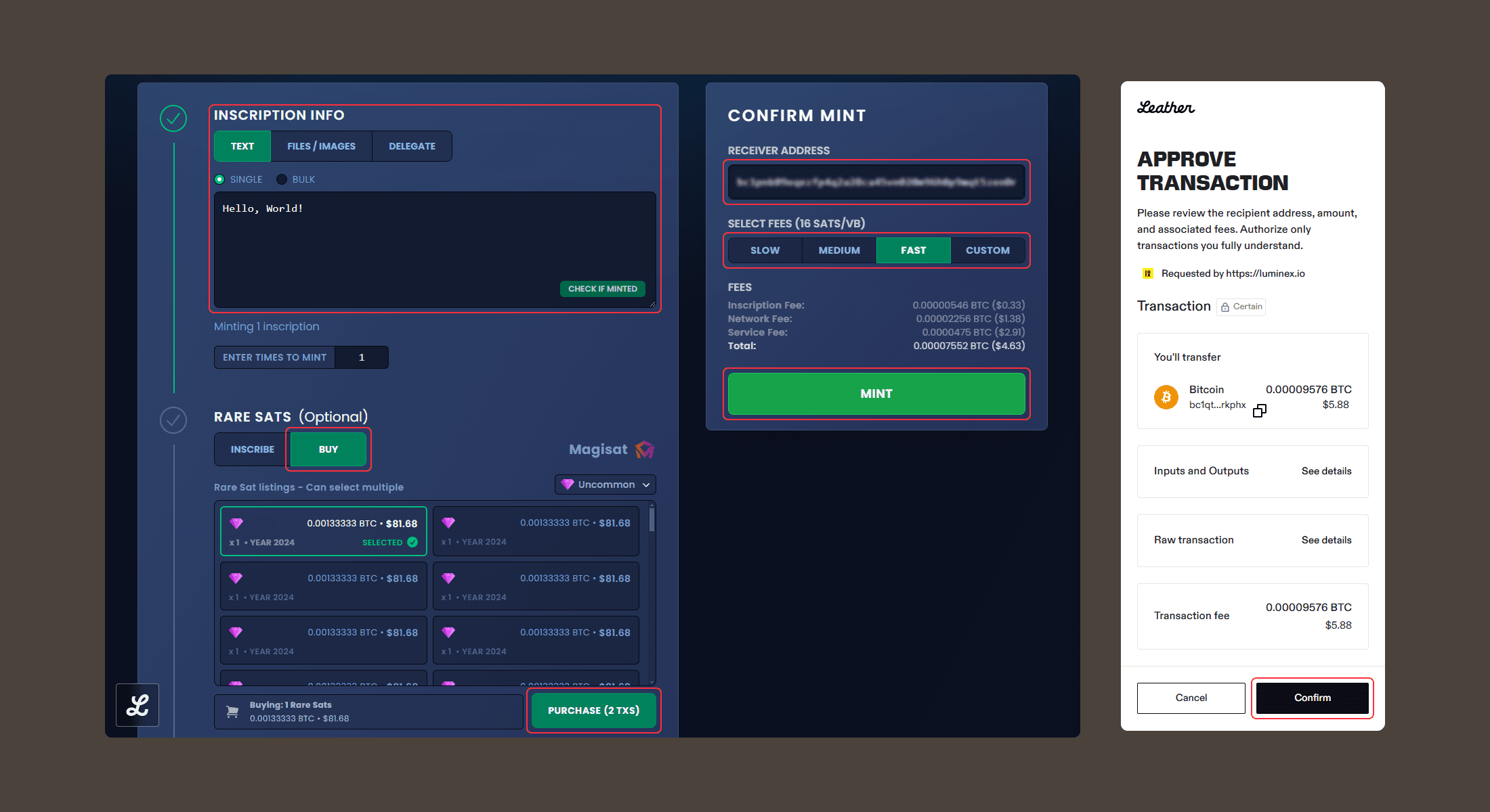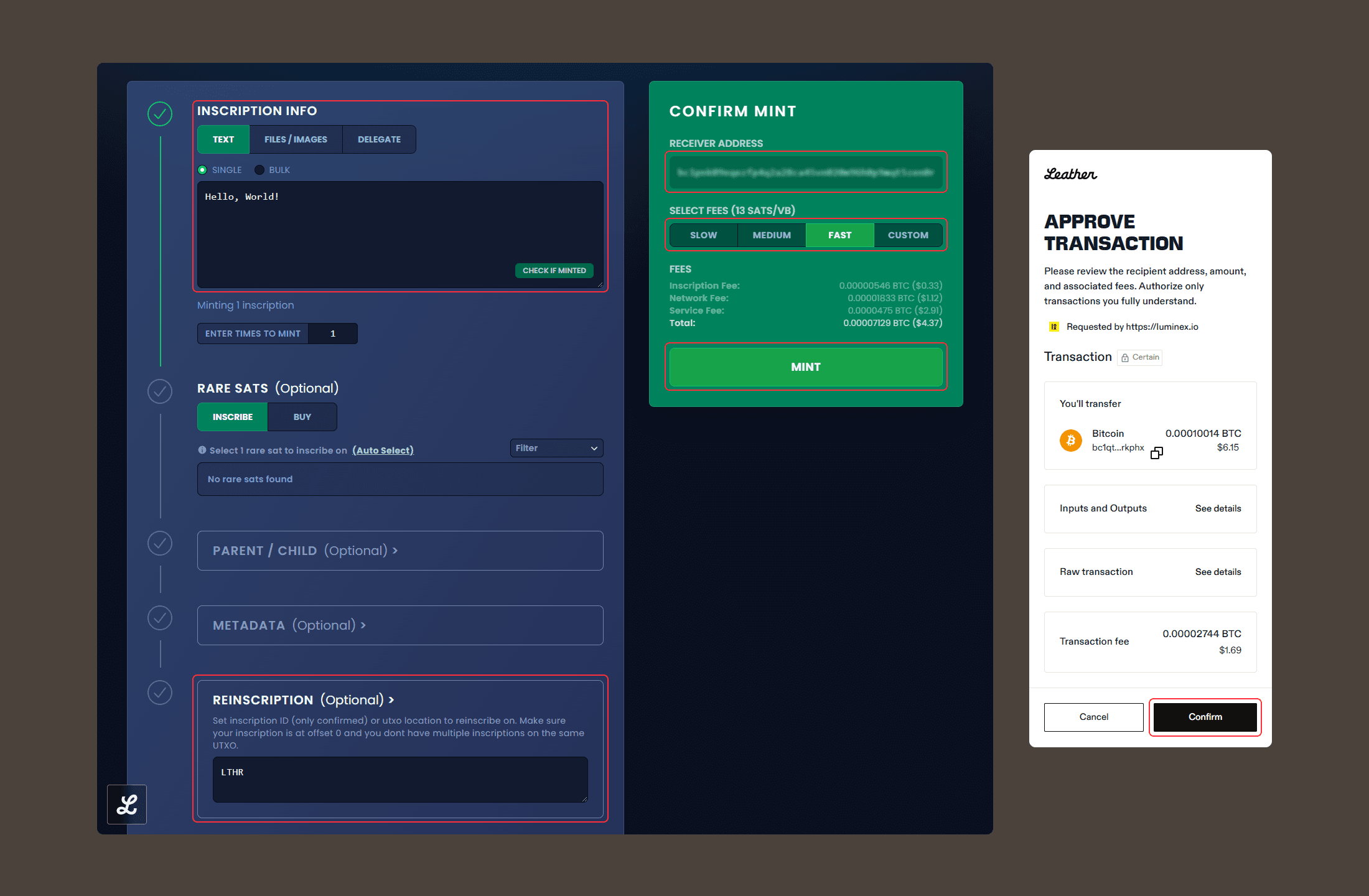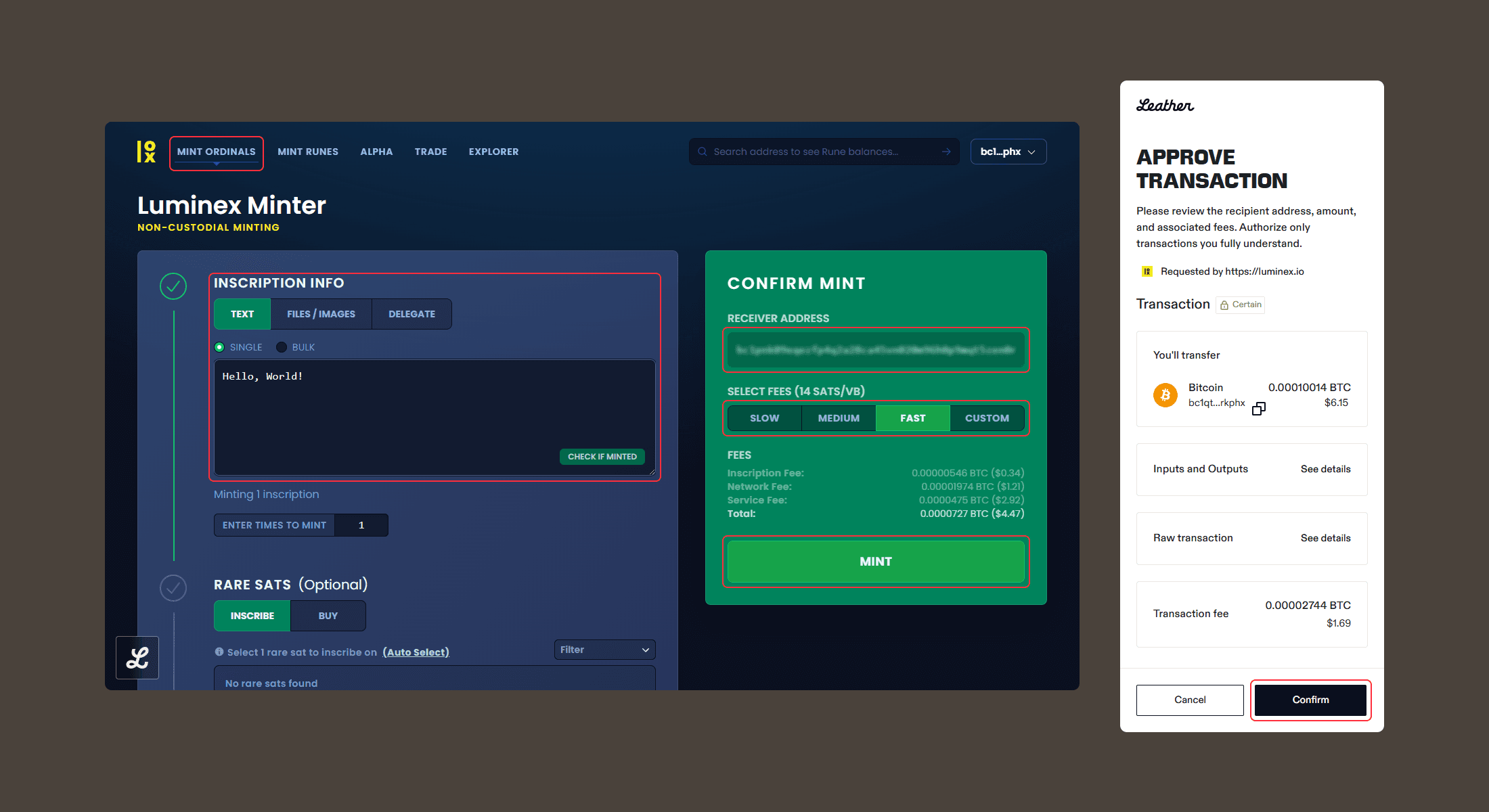 How to Inscribe Ordinals On Rare Sats in Luminex with Leather